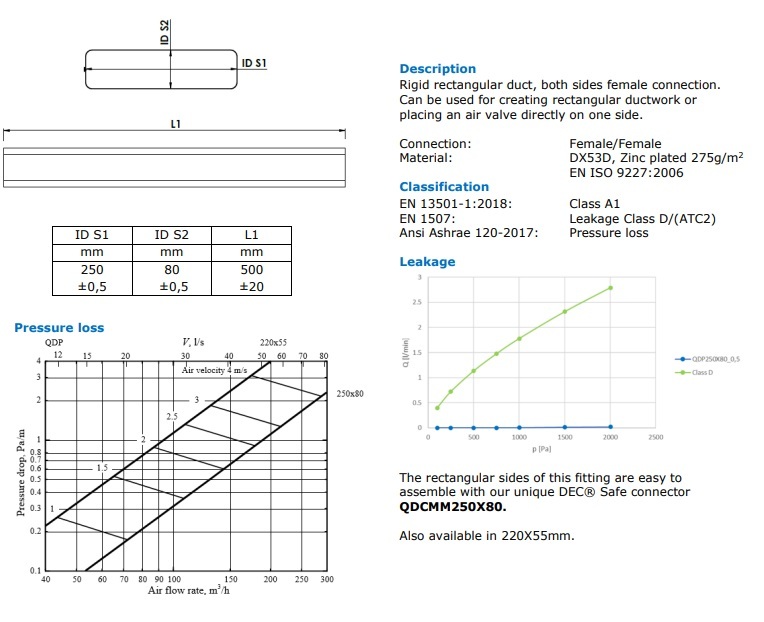 Прямоугольный жесткий воздуховод DEC Quadrodec